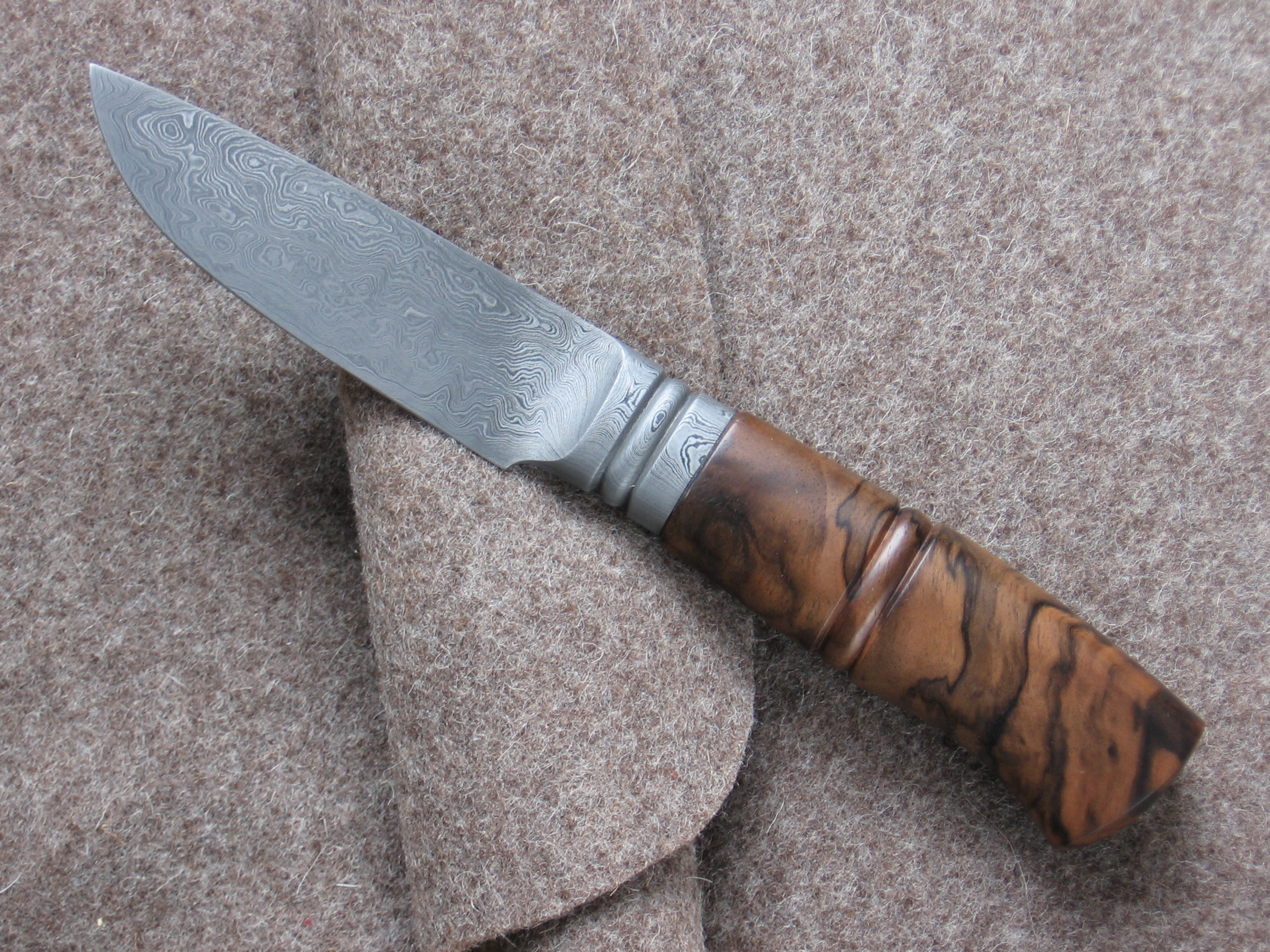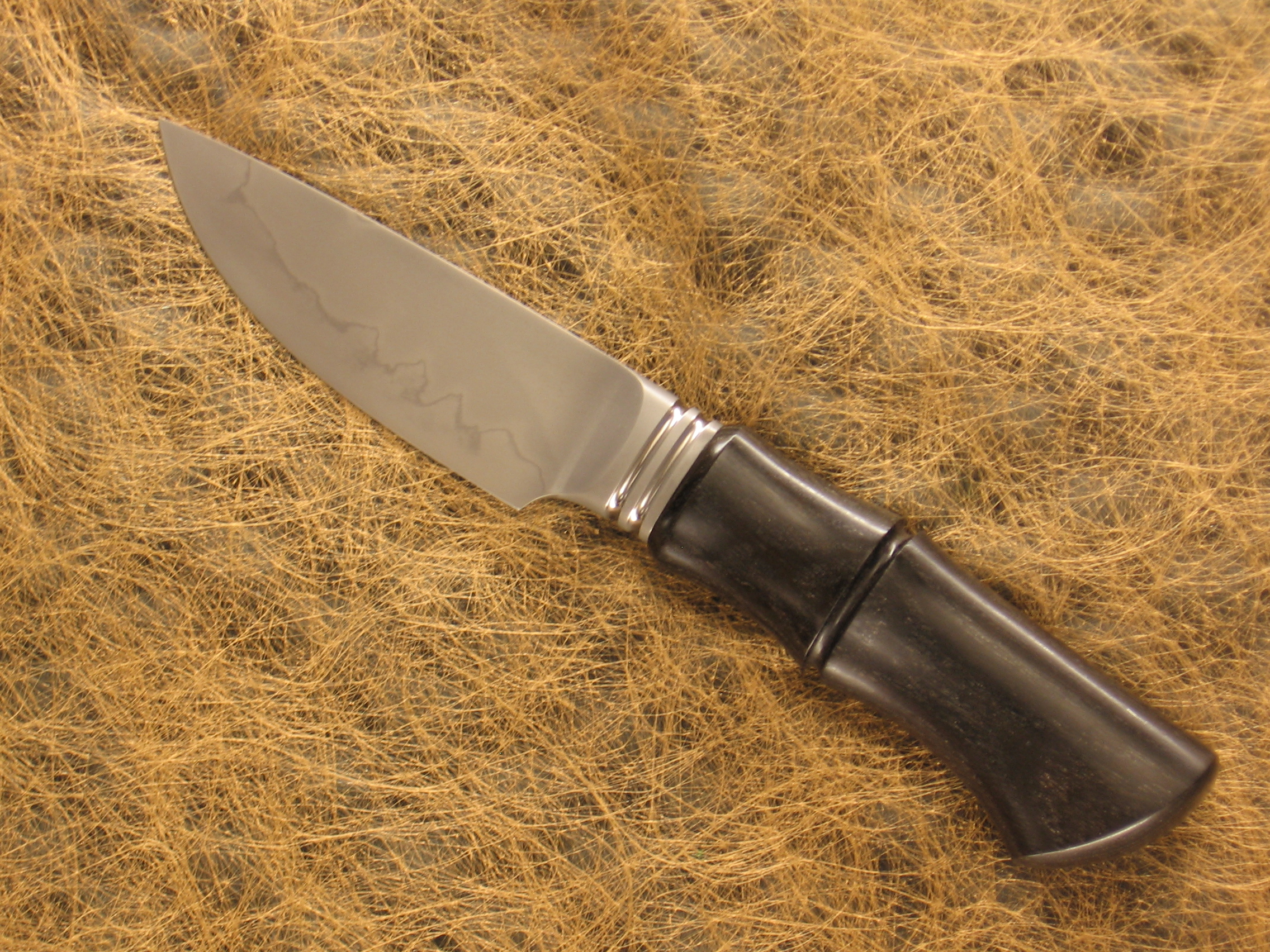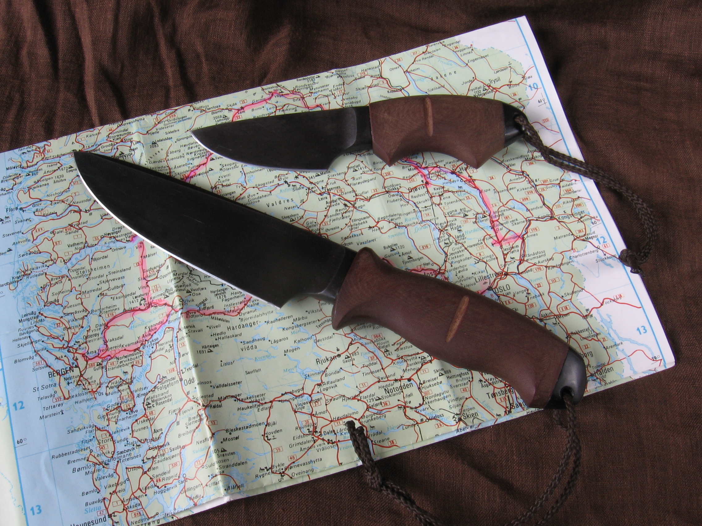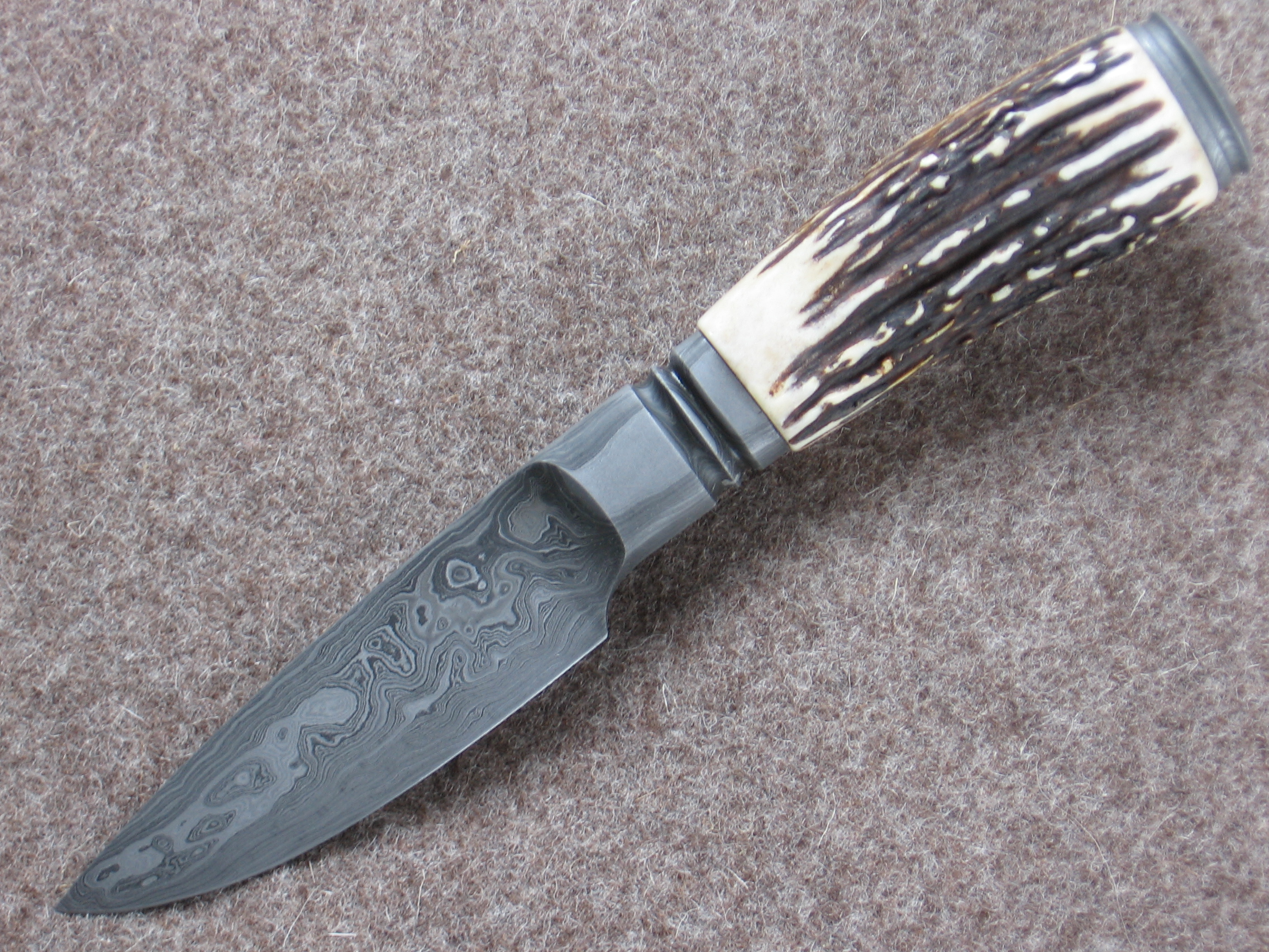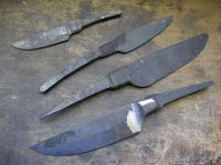 Ich schmiede die Klingen der Messer aus unlegiergten und niedriglegierten Stählen. Die Arbeit beginnt mit der Stahlauswahl. Wie bei vielen Dingen muß auch hier Material und Nutzung zusammen passen. Für die Damastklingen stelle ich den Damast selbst her. Für die Griffe verwende ich natürliche Materialien wie Holz, Horn, Geweih und Knochen. Die Lederscheiden werden aus hochwertigem Blankleder von Hand genäht.
