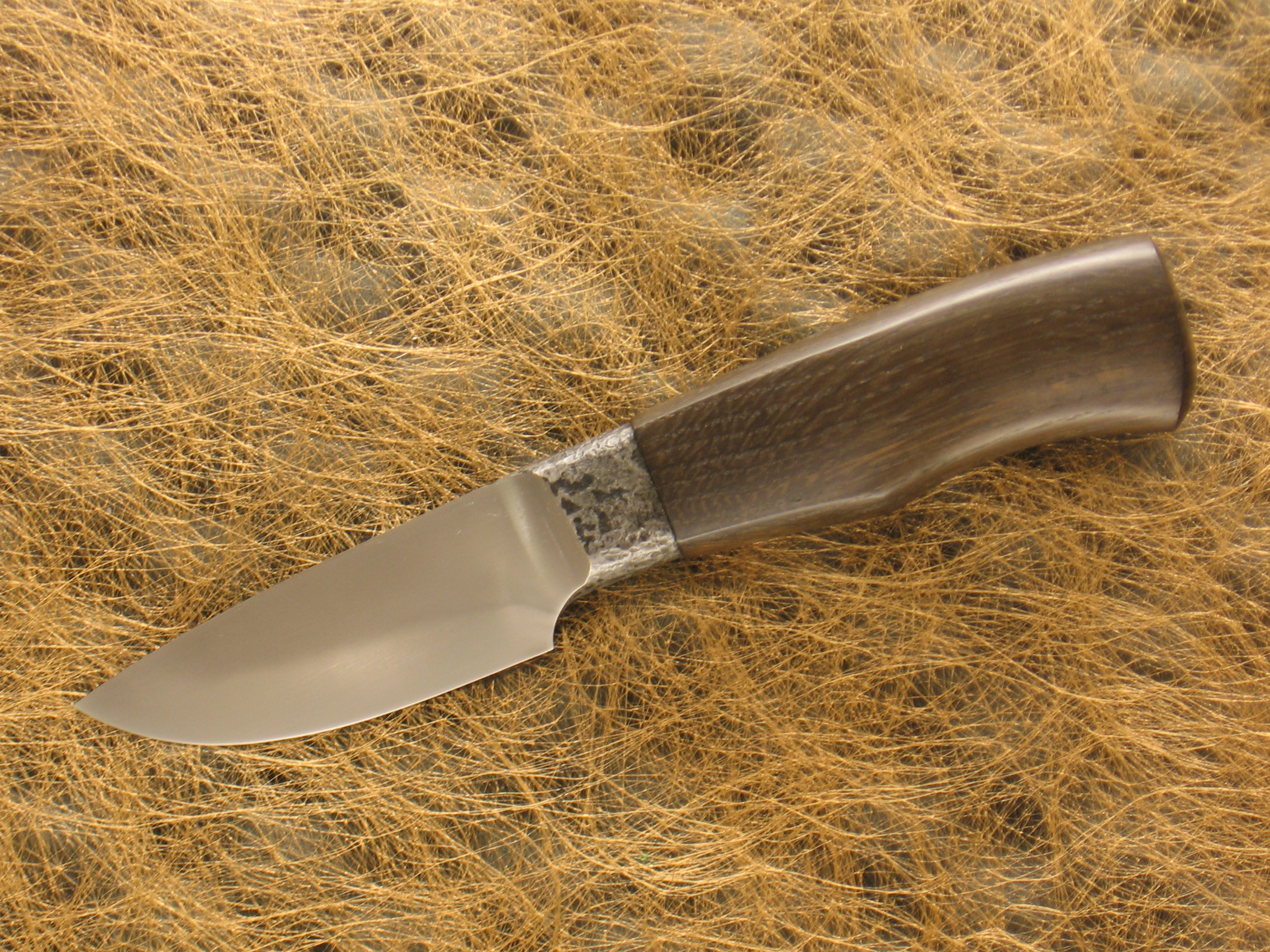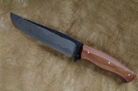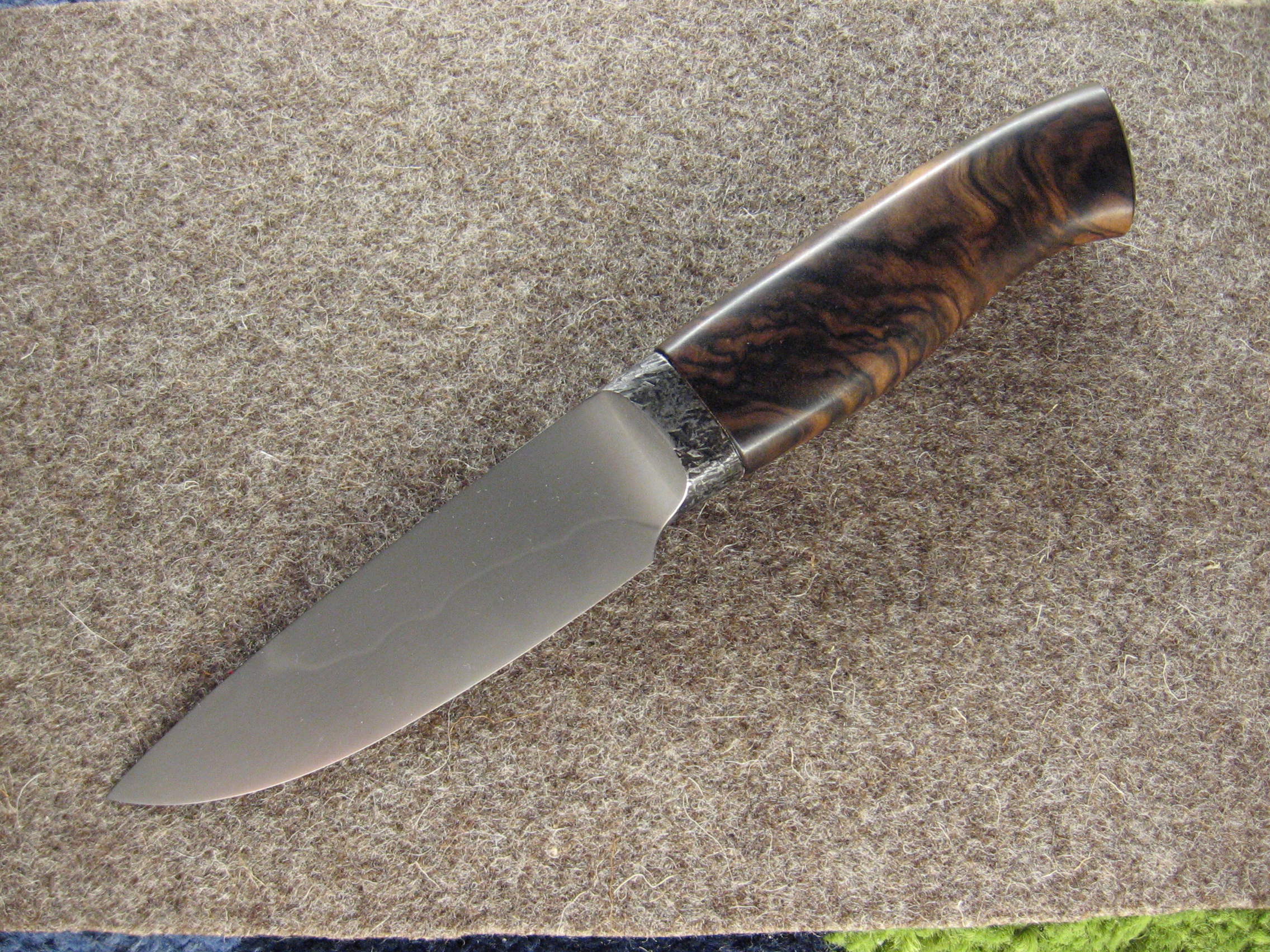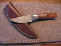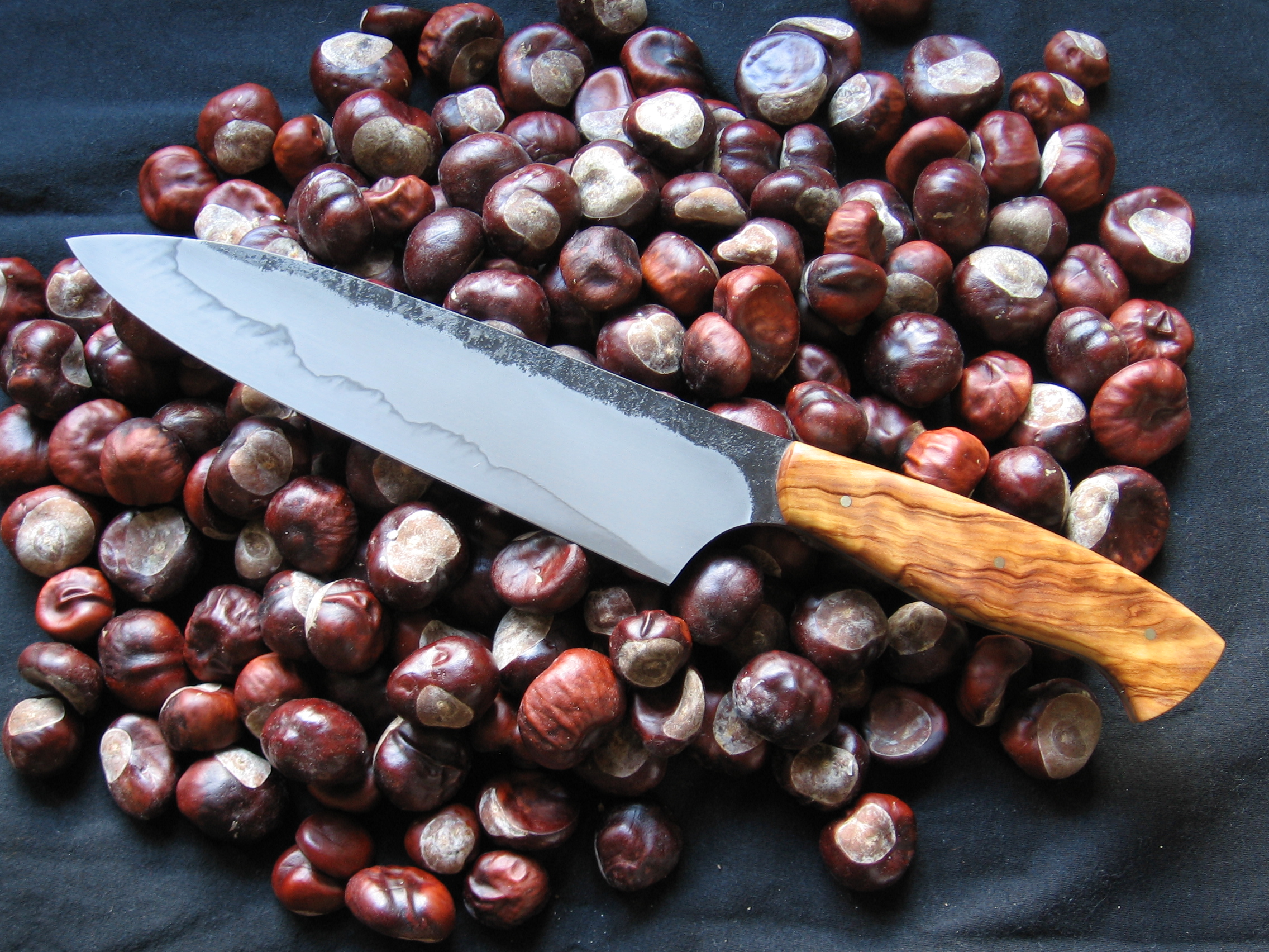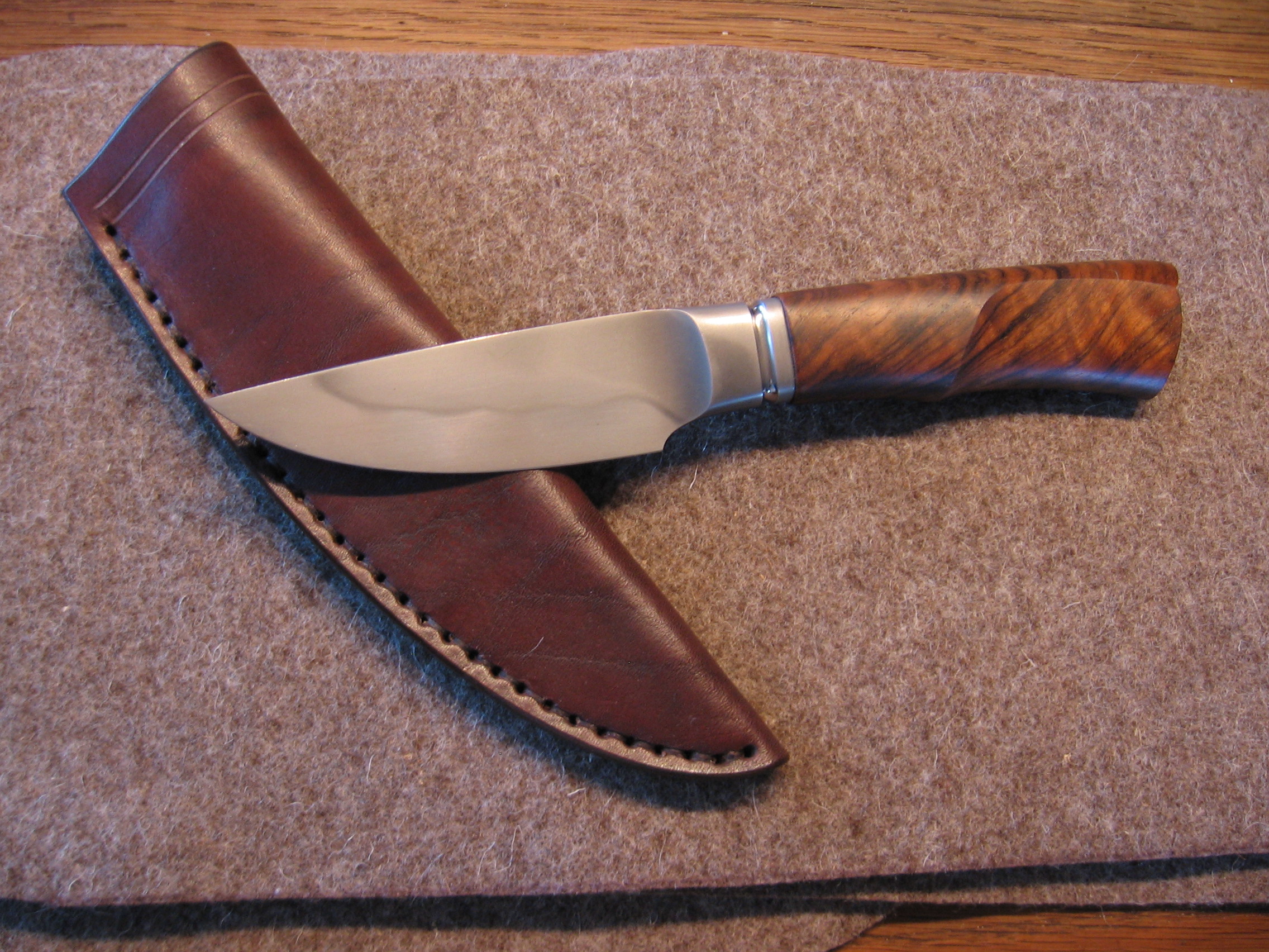 Ich schmiede die Klingen der Messer aus unlegiergten und niedriglegierten Stählen. Die Arbeit beginnt mit der Stahlauswahl. Wie bei vielen Dingen muß auch hier Material und Nutzung zusammen passen. Für die Damastklingen stelle ich den Damast selbst her. Für die Griffe verwende ich natürliche Materialien wie Holz, Horn, Geweih und Knochen. Die Lederscheiden werden aus hochwertigem Blankleder von Hand genäht.