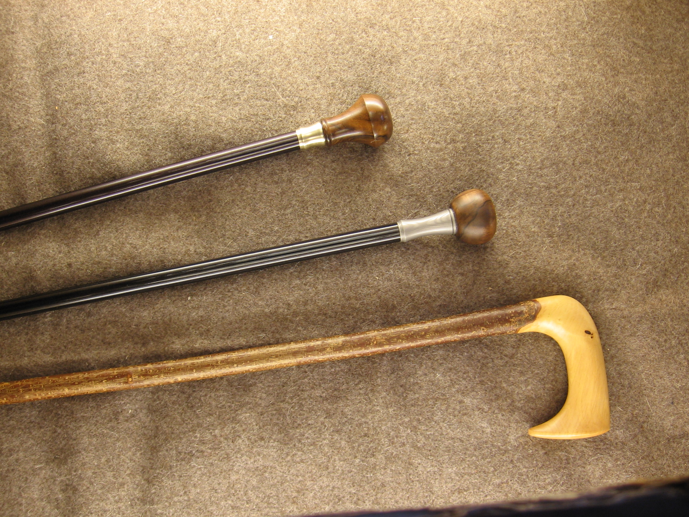Schwarzdorn und Haselnuss ist mein bevorzugtes Ausgangsmaterial. Die Griffe entsehen meist aus Holz oder Horn bzw. Geweih.